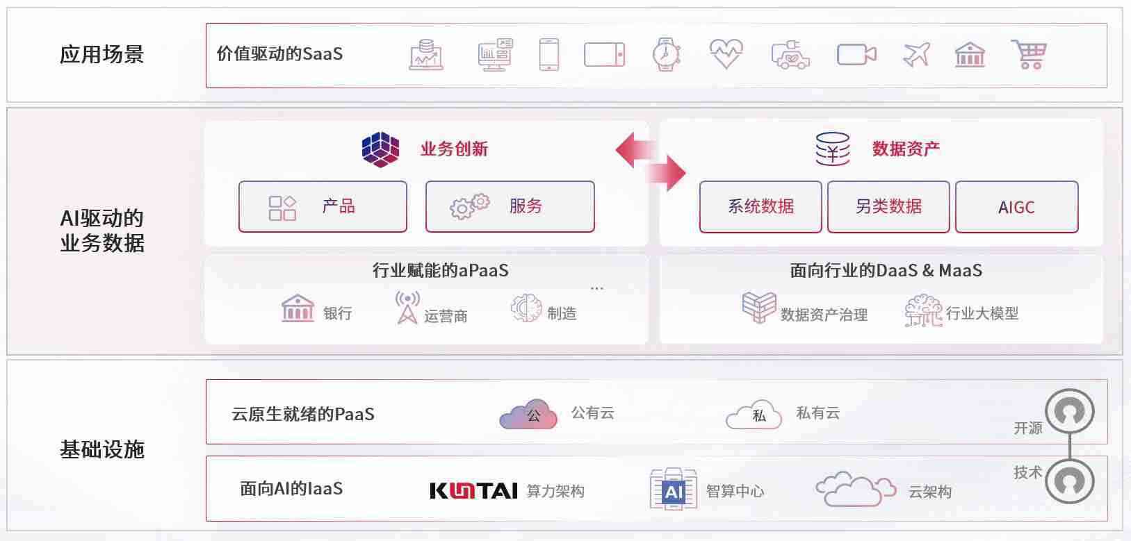 数字时代,,,,围绕企业数字化转型的关键要素,,,234钱包数码开创性的提出数云融合战略和技术体系框架,,,,着力在云原生、、数字原生、、AI原生和信创产业上架构产品和服务能力,,,,为处在不同数字化转型阶段的快消零售、、汽车、、、金融、、医疗、、、政企、、教育、、运营商等行业客户提供泛在的敏捷IT能力和融合的数据驱动能力,,构建跨界融合创新的数字业务场景和新业务模式,,,,助力企业级客户建立面向未来的核心能力和竞争优势,,,,全面推动社会的数字化、、、智能化转型升级。。